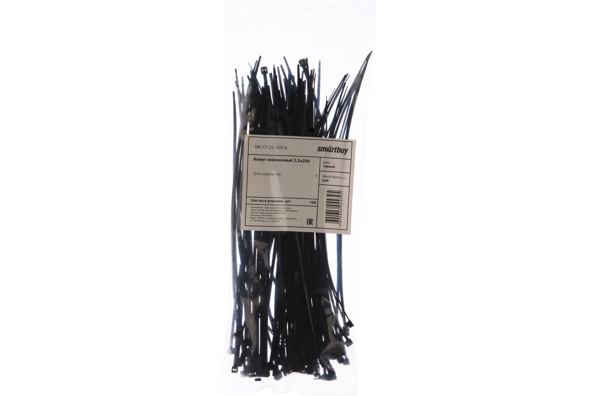 Технические характеристики хомута Smartbuy 2,5х200, черный