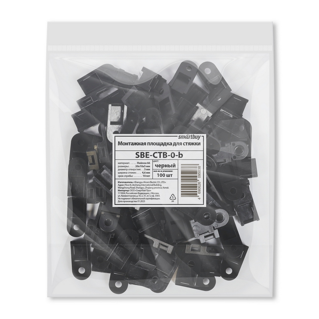 Монтажная площадка для стяжки 20x10 мм для хомутов шириной до 4 мм, черная (SBE-CTB-0-b)