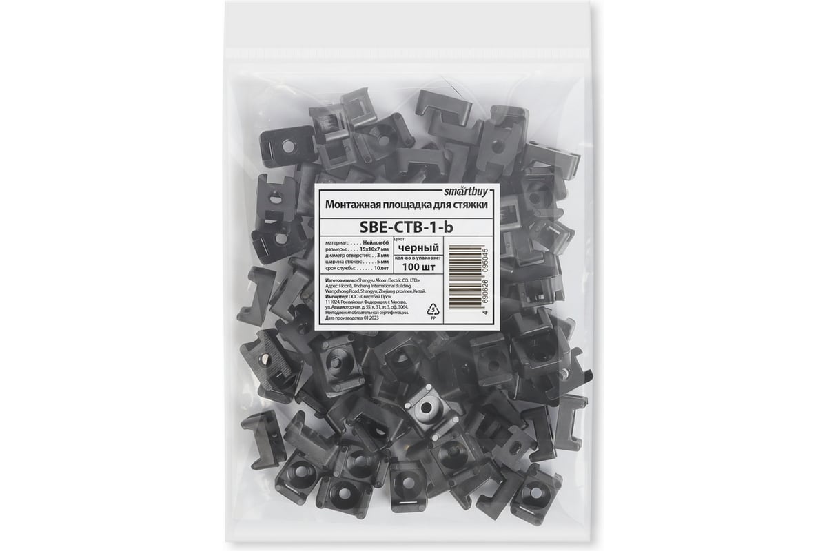 Технические характеристики монтажной площадки Smartbuy 15x10 мм черная