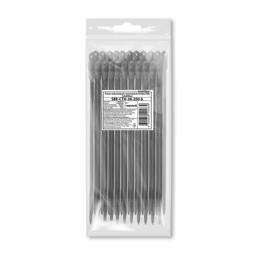 Smartbuy SBE-CTH-36-200-b Хомут нейлоновый с монтажным отверстием 3,6х200мм