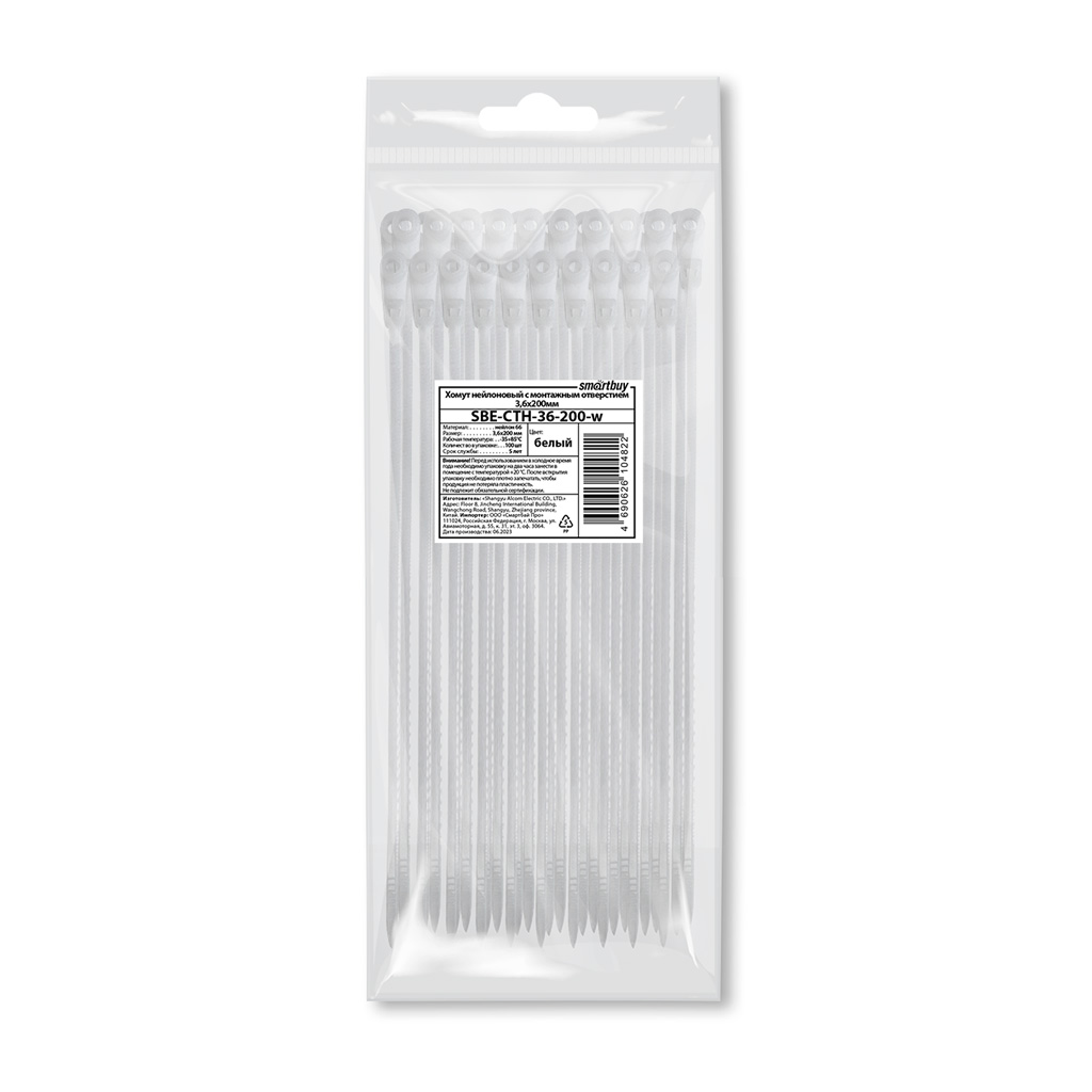 Smartbuy SBE-CTH-36-200-w Хомут нейлоновый с монтажным отверстием 3,6х200мм