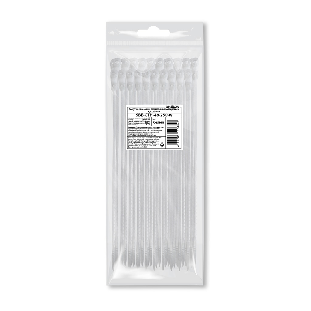 Smartbuy SBE-CTH-48-250-w Хомут нейлоновый с монтажным отверстием 4,8х250мм
