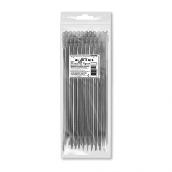 Хомут нейлоновый с монтажным отверстием 4,8х300мм, черный (SBE-CTH-48-300-b)/100