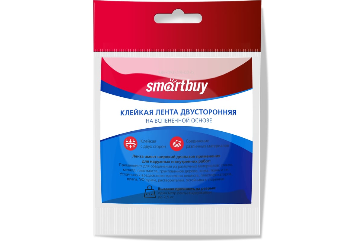 Smartbuy SBE-DST-19-02-b Клейкая лента двусторонняя, на вспененной основе 1.0х19мм