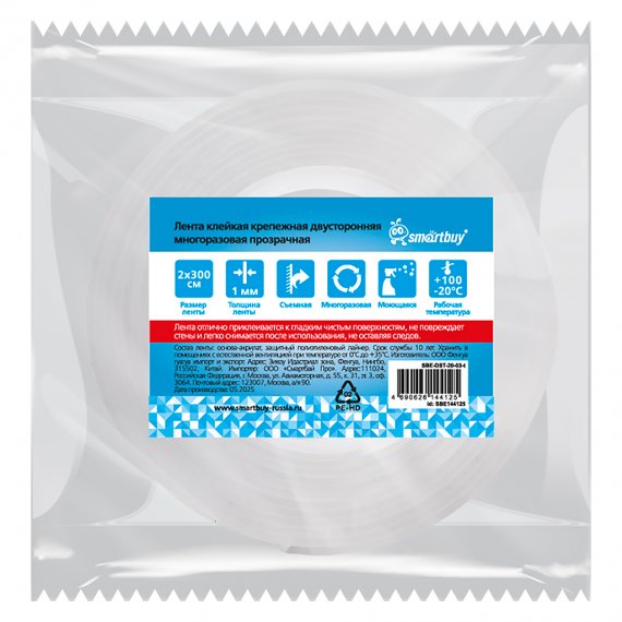 Smartbuy SBE-DST-20-03-t Нано скотч двусторонний многоразовая клейкая лента 1x20мм, 3м