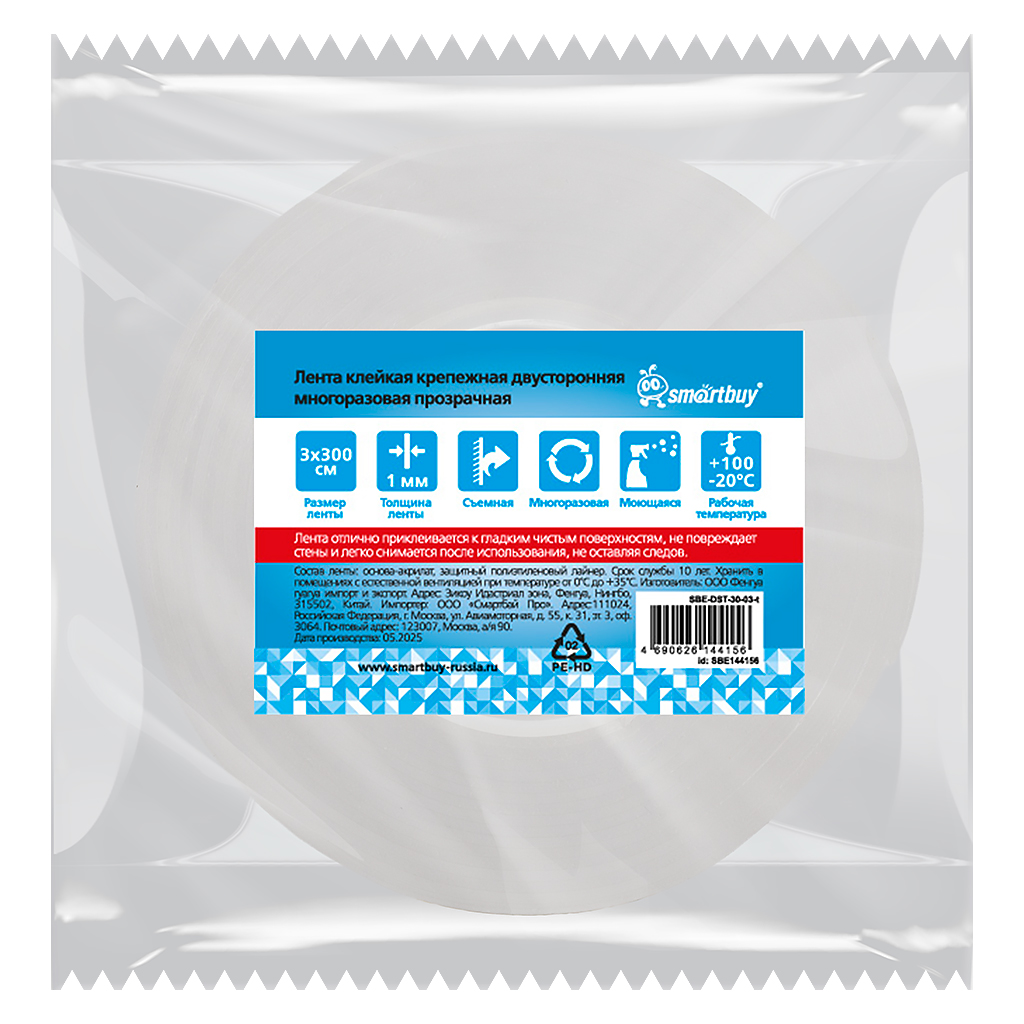 Smartbuy SBE-DST-30-03-t Нано скотч двусторонний многоразовая клейкая лента 1x30мм