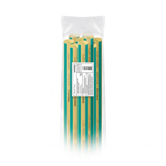 Термоусаживаемая трубка 10/5, желто-зеленая, 10 шт по 1 метру (SBE-HST-10-yg)