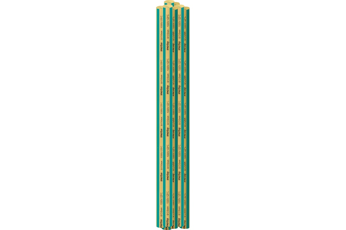Термоусаживаемая трубка 12/6, желто-зеленая, 10 шт по 1 метру (SBE-HST-12-yg)