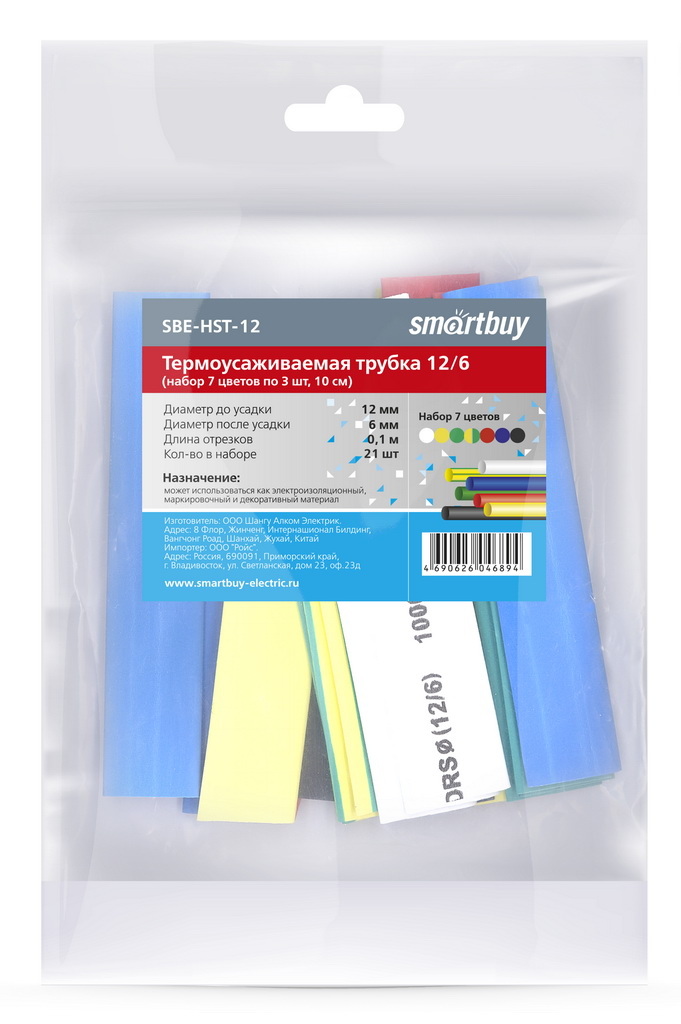 Термоусаживаемая трубка 12/6 набор (7 цветов по 3 шт, 10 см) (SBE-HST-12)