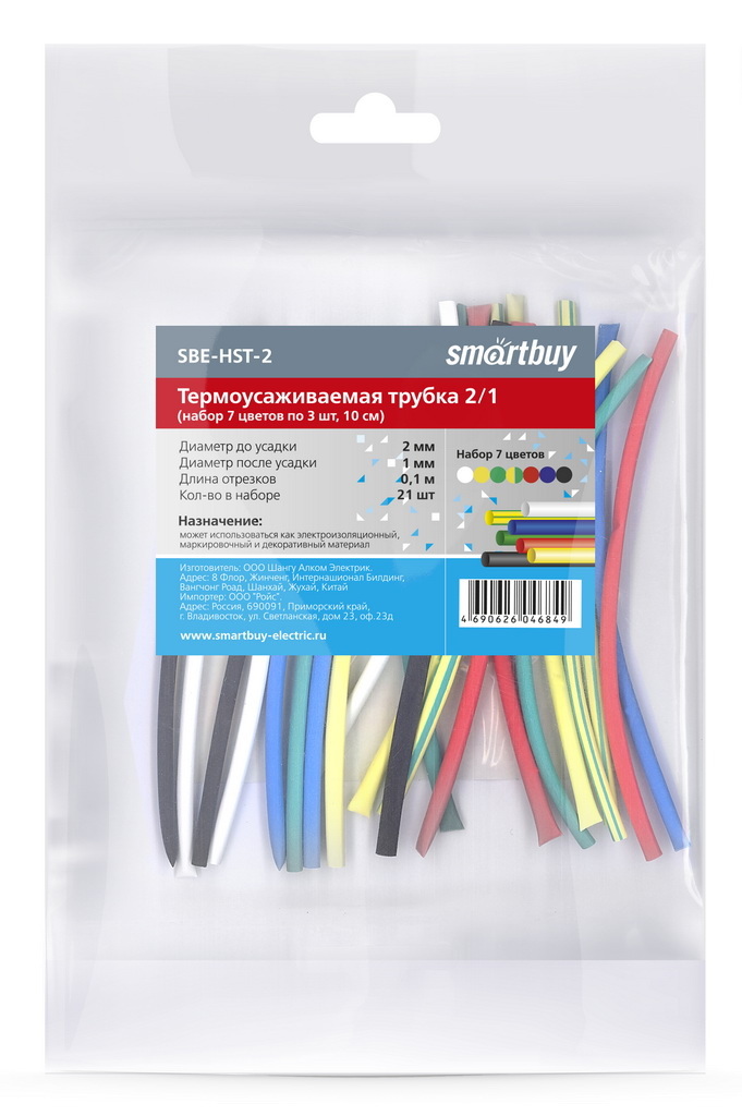 Термоусаживаемая трубка 2/1 набор (7 цветов по 3 шт, 10 cм) (SBE-HST-2)