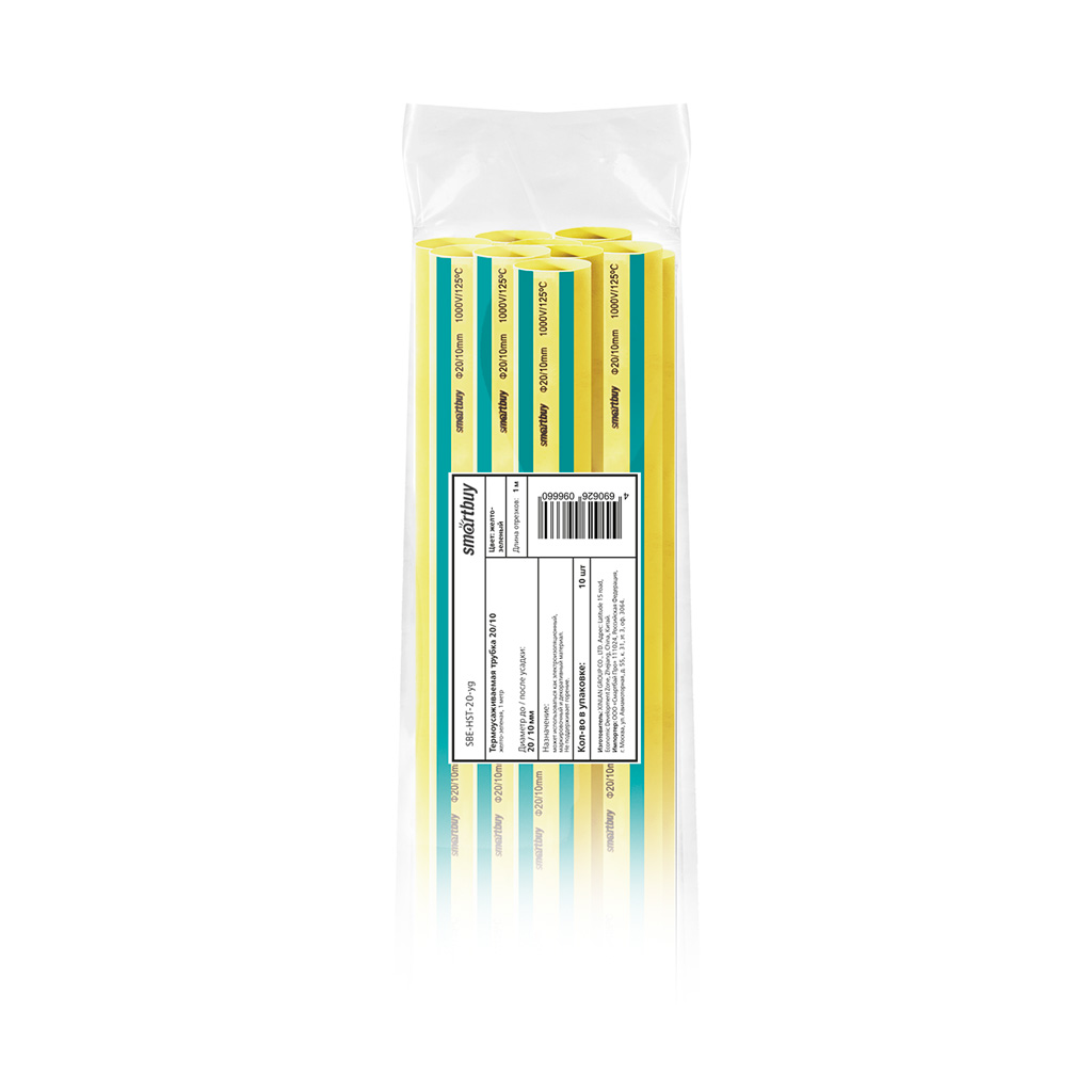 Термоусаживаемая трубка 20/10, желто-зеленая, 10 шт по 1 метру (SBE-HST-20-yg)