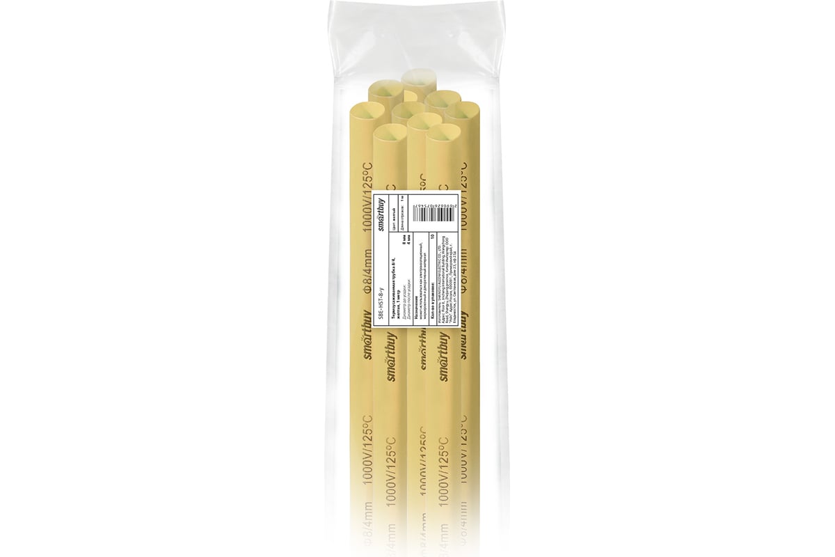 Термоусаживаемая трубка Smartbuy 8/4, желтая, 1 метр SBE-HST-8-y представляет собой трубку выполненную из полиолефина. Трубка предназначена для изоляции и антикоррозионной защиты электрических соединений. Надетая в растянутом состоянии на различные предметы, при нагреве она уменьшается в размерах, обтягивая предметы, принимая их наружную форму.
