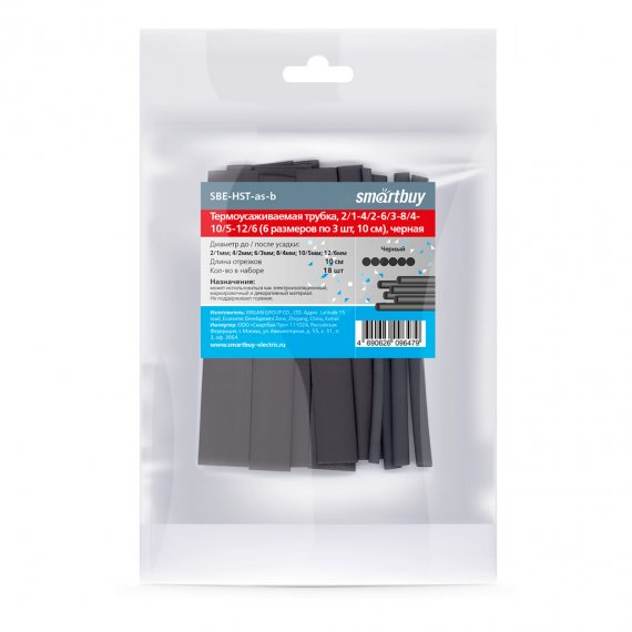 Smartbuy SBE-HST-as-b Термоусаживаемая трубка, 2/1-4/2-6/3-8/4-10/5-12/6