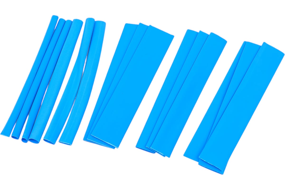 Термоусаживаемая трубка, 2/1-4/2-6/3-8/4-10/5-12/6 (6 р-ов по 3 шт, 10 см), синяя(SBE-HST-as-db)