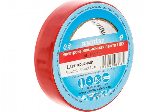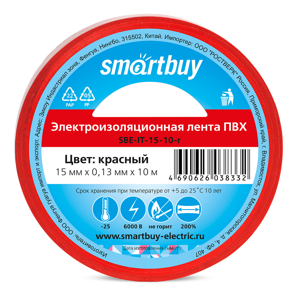 Изолента Smartbuy 0.13х15 мм, 10 метров, красная SBE-IT-15-10-r отличается высокой гибкостью и адгезией. Изделие позволяет проводить разметку проводов, их электроизоляцию или ремонт.