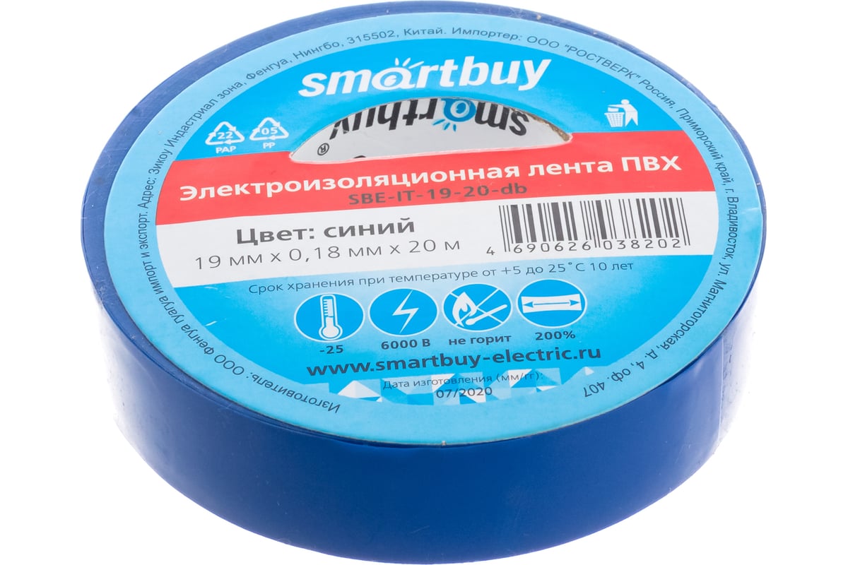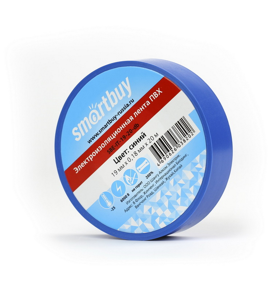 Изолента Smartbuy, 0.18х19мм, 20 метров, синяя (SBE-IT-19-20-db)