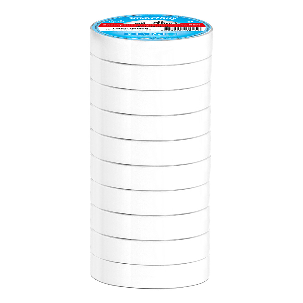 Изолента Smartbuy, 0.18х19мм, 20 метров, белая (SBE-IT-19-20-w)