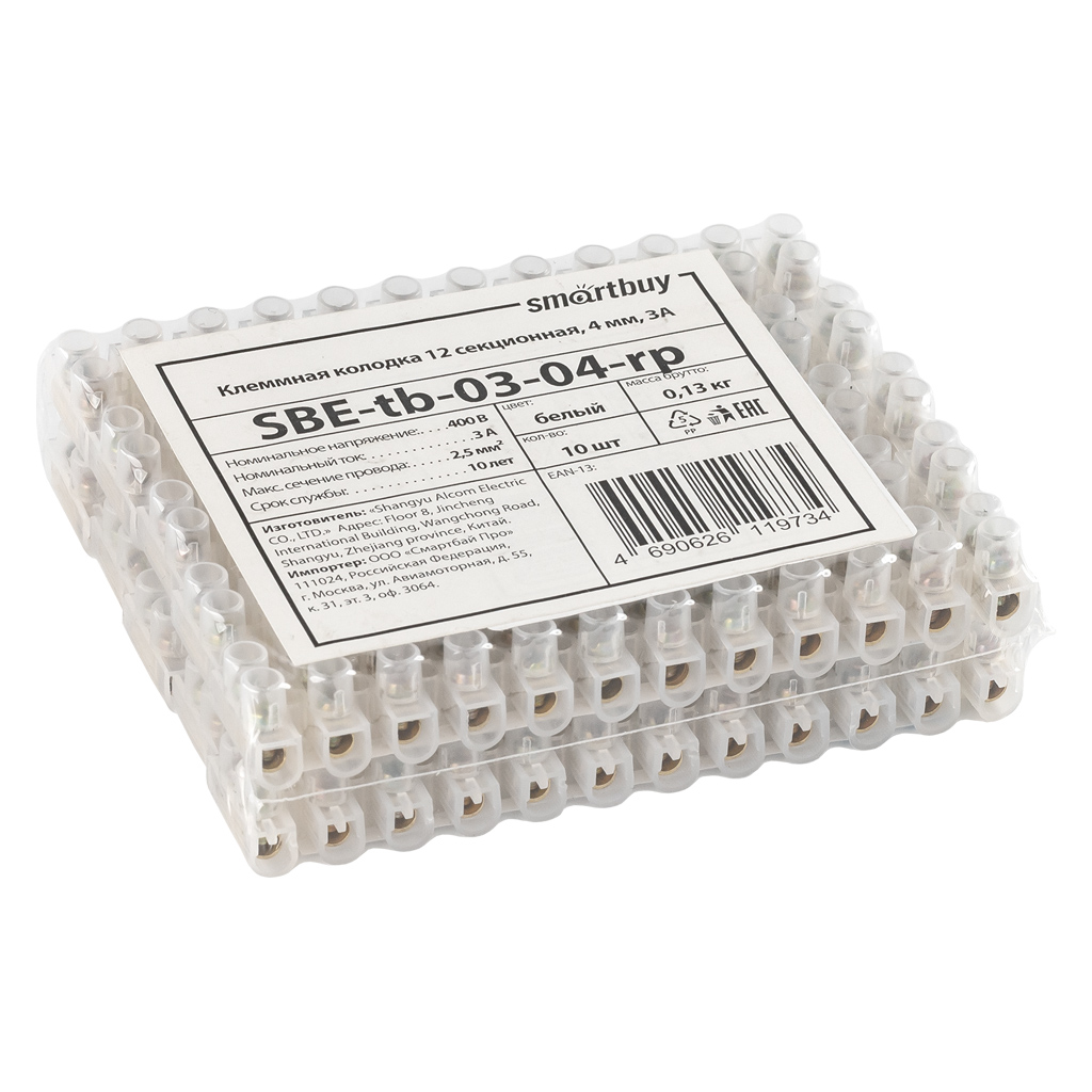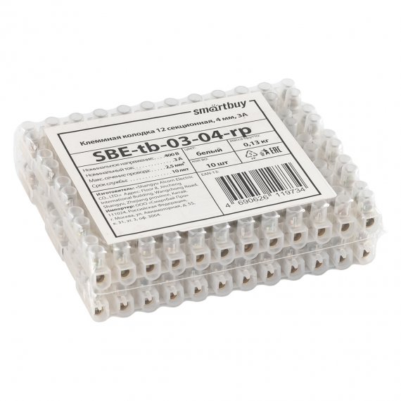 Smartbuy SBE-tb-03-04-rp Клеммная колодка 12 секционная с этикеткой, 4 мм, 3А