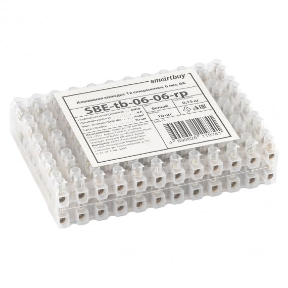 Smartbuy SBE-tb-06-06-rp Клеммная колодка 12 секционная с этикеткой, 6 мм, 6А