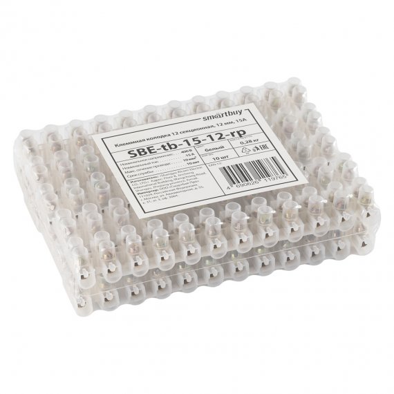Smartbuy SBE-tb-15-12-rp Клеммная колодка 12 секционная с этикеткой, 12 мм, 15А