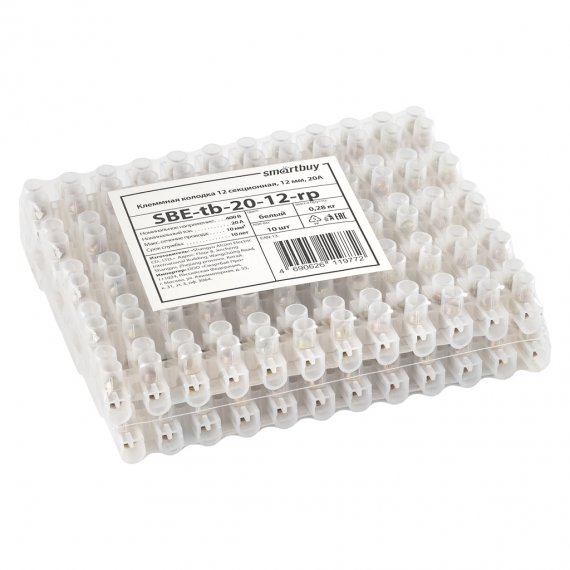 Smartbuy SBE-tb-20-12-rp Клеммная колодка 12 секционная с этикеткой, 12 мм, 20А