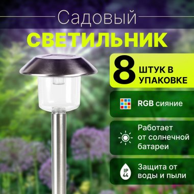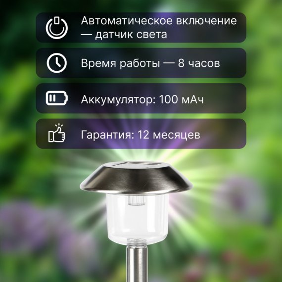 Садовый светильник Smartbuy на солнечной батарее, нержавеющая сталь, пластик, 39 см (SBF-106)/48
