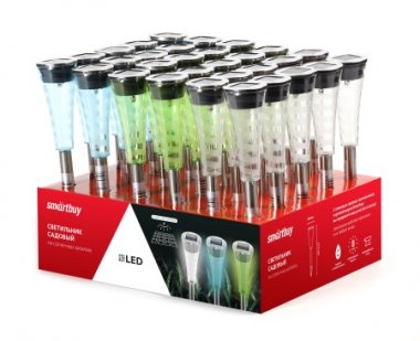 Садовый светильник Smartbuy на солнечной батарее,нержавеющая сталь, пластик,4x4x27,5 см (SBF-110)/30