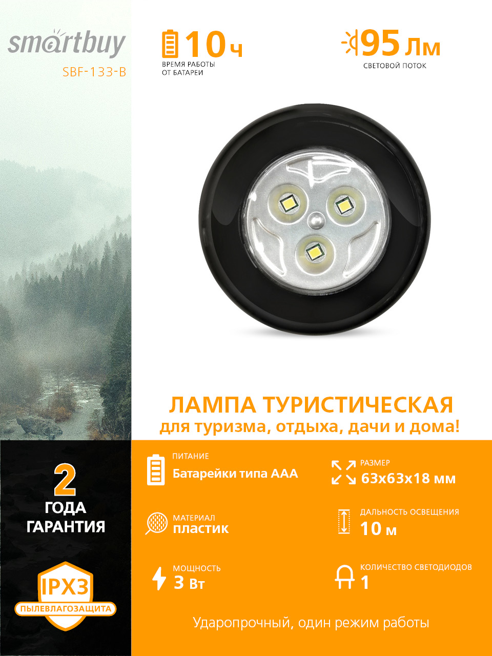 Технические характеристики Smartbuy PUSH LIGHT 3 Вт SBF-133-B