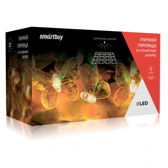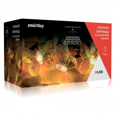 Садовая гирлянда Smartbuy на солнечной батарее, Бабочки, пластик, 2м (SBF-206)/12