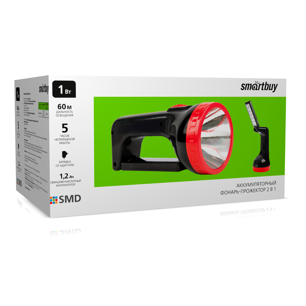 Smartbuy SBF-303-K Аккумуляторный фонарь-прожектор 2 в 1 1W+18 SMD