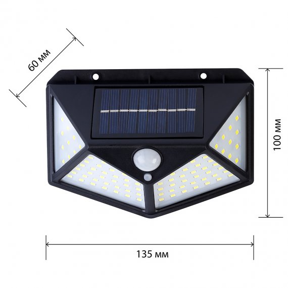 Настенный светильник 12Вт 100LED, на солнечных батареях, с датчиком движения, черный (SBF-33-MS)/100