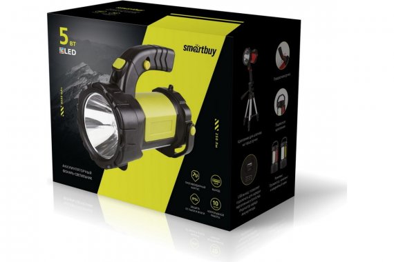 Аккумуляторный фонарь-прожектор Smartbuy 5W+3W SBF-501-K с семью режимами работы заряжается от USB. Имеет разъем USB для подзарядки гаджетов. Оснащен поворотной рукояткой и возможностью крепления к штативу. Корпус противоударный, защищен от влаги и пыли по стандарту IP-54.
