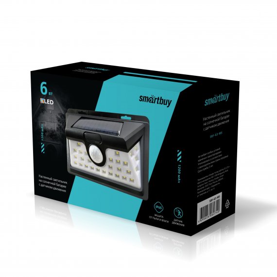 Настенный светильник Smartbuy на солнечных батареях, с датчиком движения, 24 LED, черный SBF-63-MS заряжается от солнечного света и использует накопленную энергию для освещения в темное время суток. Включается на 10 секунд в тёмное время суток по датчику движения. Защищен от неблагоприятных погодных условий, долговечный и энергосберегающий.
