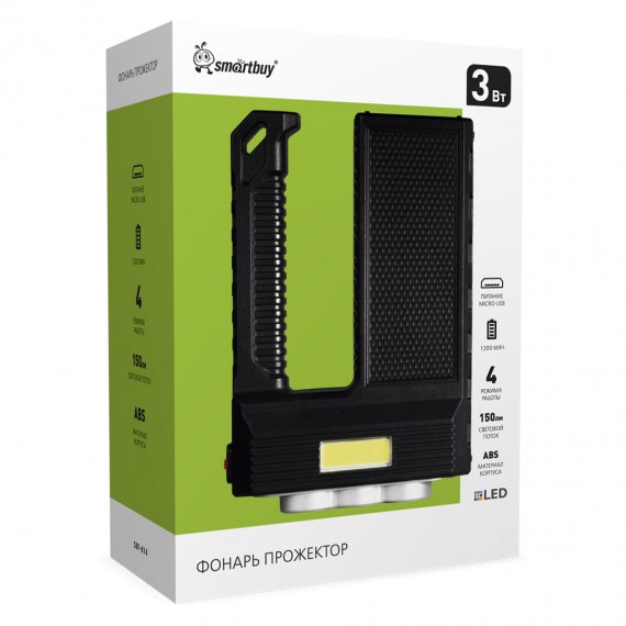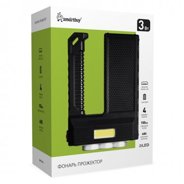 Фонарь прожектор Smartbuy SBF-814 с 6 LED светодиодами осветит необходимую площадь. Боковая COB сборка светодиодов позволяет использовать фонарь в качестве ночника.