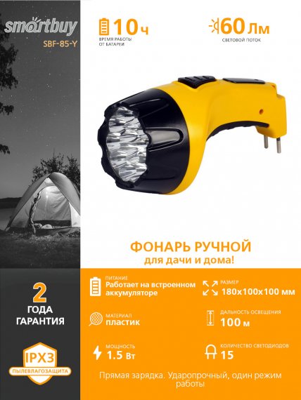Технические характеристики Smartbuy 15 LED с прямой зарядкой, желтый SBF-85-Y