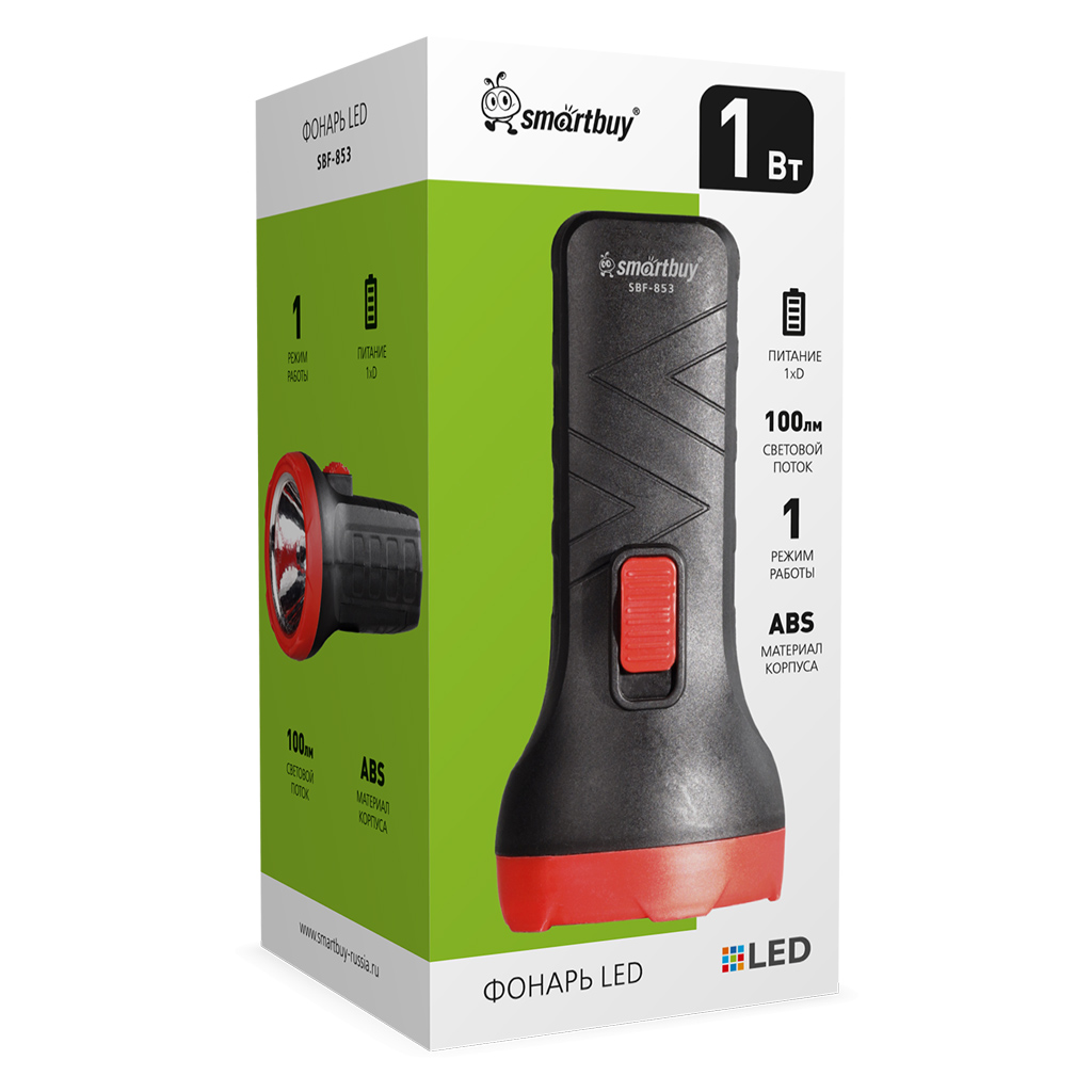 Smartbuy SBF-853 Фонарь LED, элемент питания тип D, 1 вт, 13х6 см, ABS