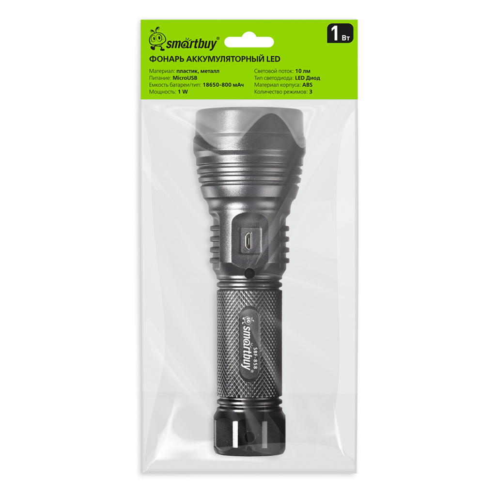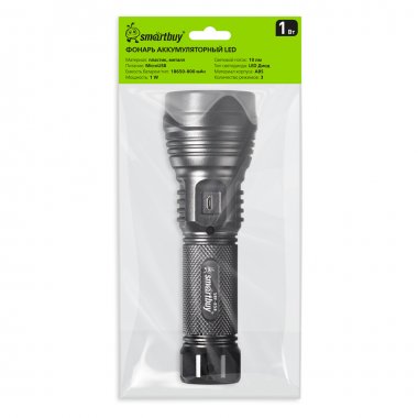 Smartbuy SBF-858 Фонарь аккумуляторный LED, 3 режима, 18650, MicroUSB, ABS