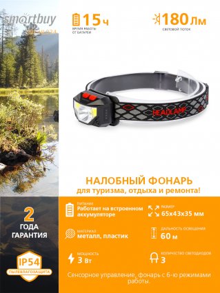 Smartbuy SBF-HL034 Аккумуляторный налобный фонарь с сенсорным управлением