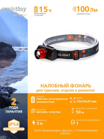 Smartbuy SBF-HL037 Аккумуляторный налобный фонарь