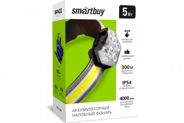 Smartbuy SBF-HL044b Аккумуляторный налобный фонарь 8 Вт LED + 5Вт COB+Stop light
