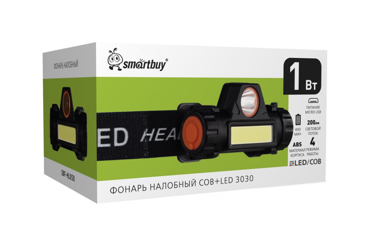 Smartbuy SBF-HL050 Фонарь налобный COB+LED 3030, налобный ремень, MicroUSB