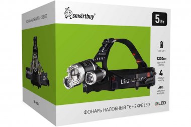 Smartbuy SBF-HL053 Фонарь налобный T6+2XPE LED, , налобный ремень, 1300 lm