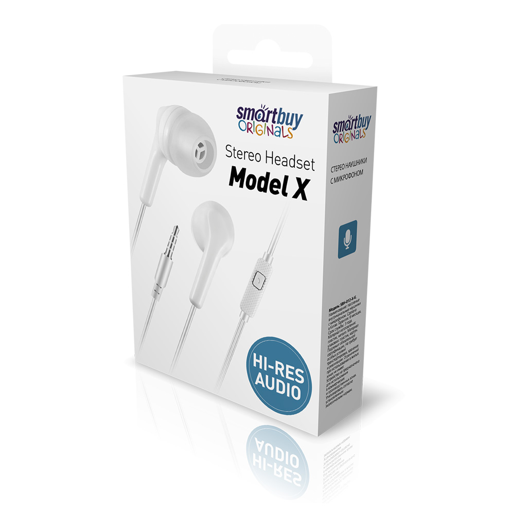 Внутриканальная гарнитура Smartbuy Model X, пульт управления, микрофон, белая (SBH-012-X-K)/50