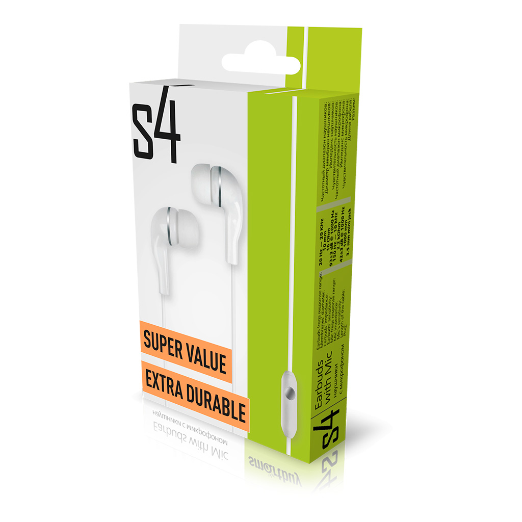 Внутриканальная гарнитура Smartbuy S4, белая, коробка (SBH-012K) /60