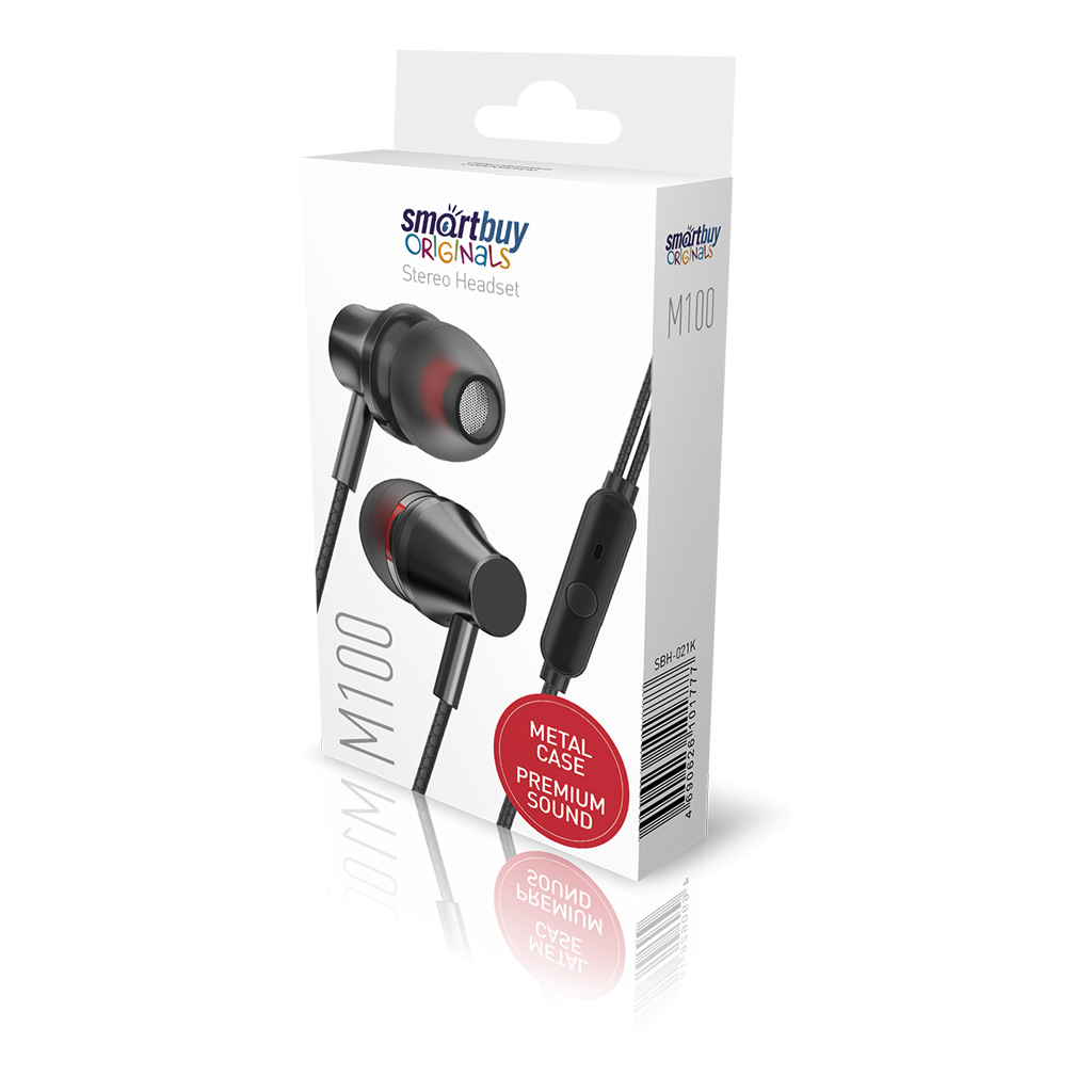 Внутриканальная гарнитура Smartbuy M100, металлич корпус, микрофон, пульт, черная (SBH-021K)/60