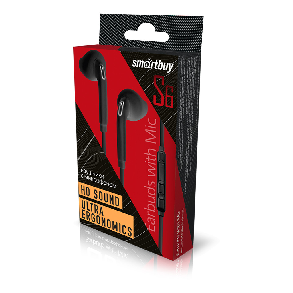 Внутриканальная гарнитура Smartbuy S6, черная, коробка (SBH-201K) /60