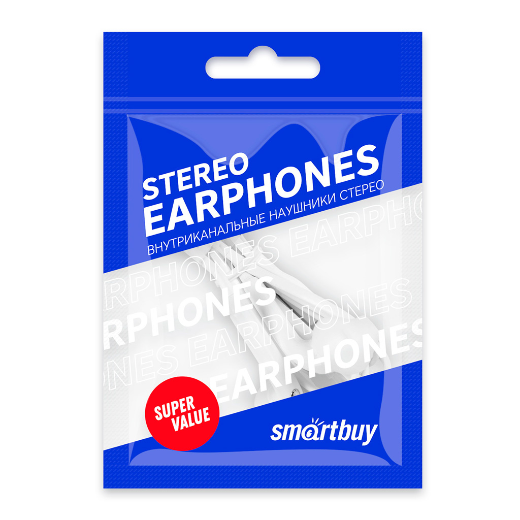 Внутриканальная гарнитура Smartbuy S6, белая, цветной пакет (SBH-202) / 100