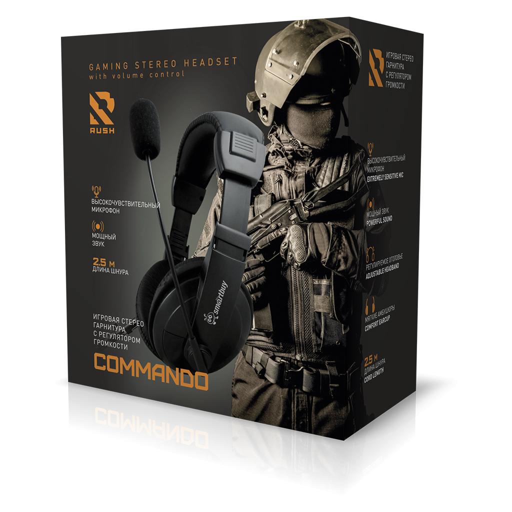 Полноразмерная стерео гарнитура SmartBuy COMMANDO, рег.громк, кабель 2.1м (арт.SBH-7000)/20