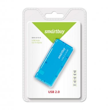 USB 2.0 Хаб Smartbuy 6110, 4 порта, голубой (SBHA-6110-B)
