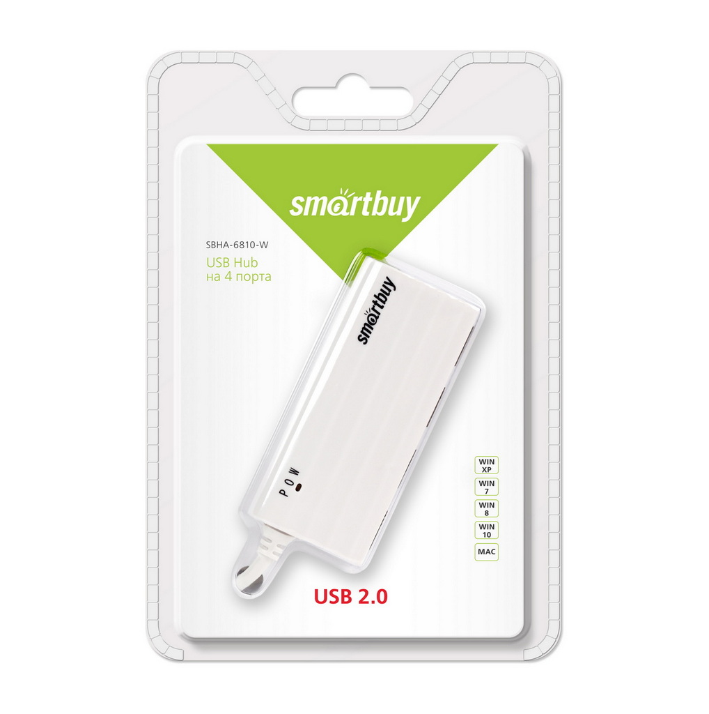 Smartbuy SBHA-6810-W USB 2.0 Хаб 6810, 4 порта, белый